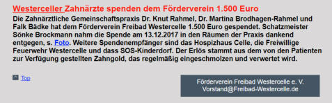 über 1.600 Euro kann sich das Celler Hospiz freuen,