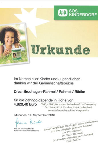 ebenfalls 1.600 Euro gehen an das SOS-Kinderdorf